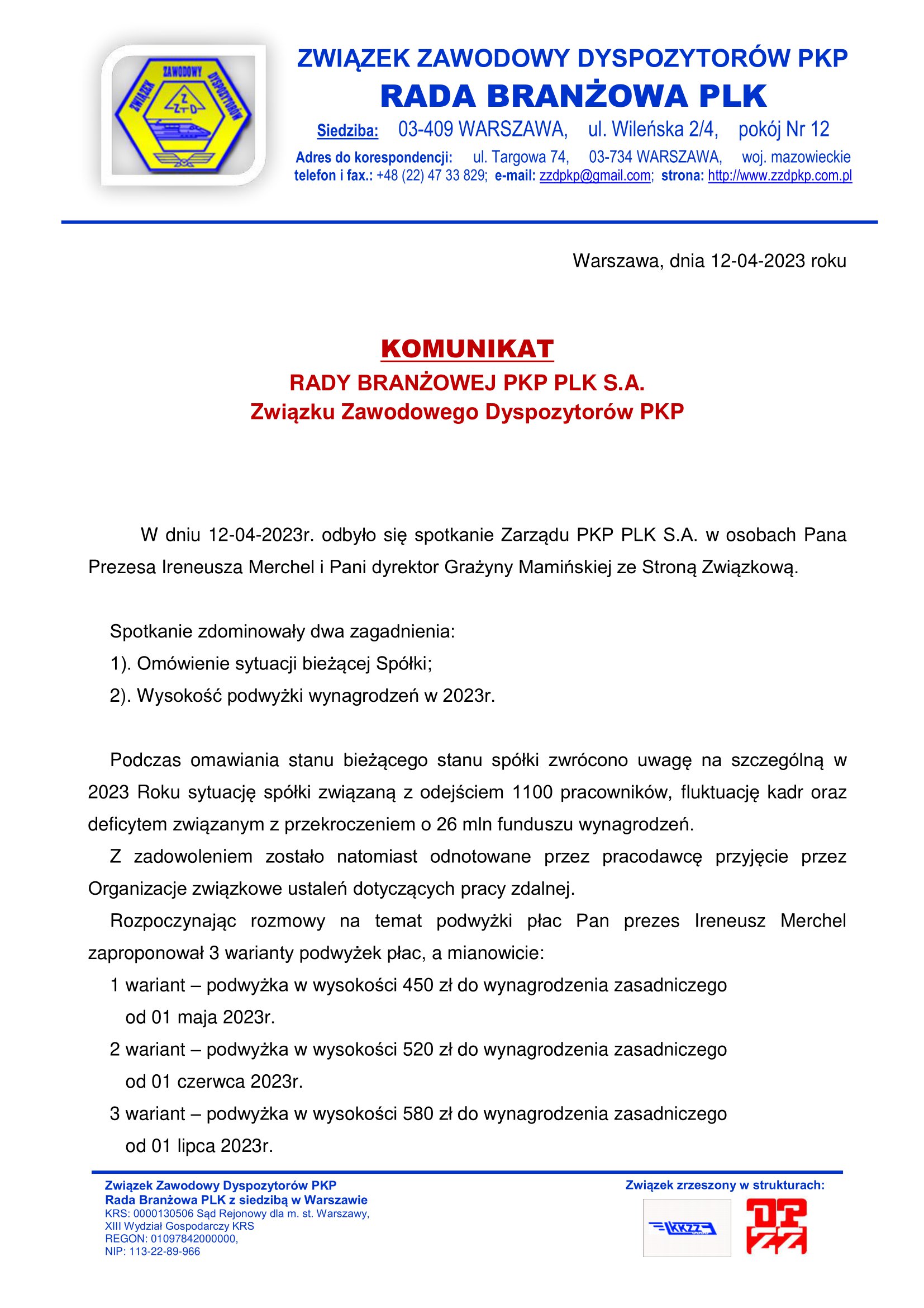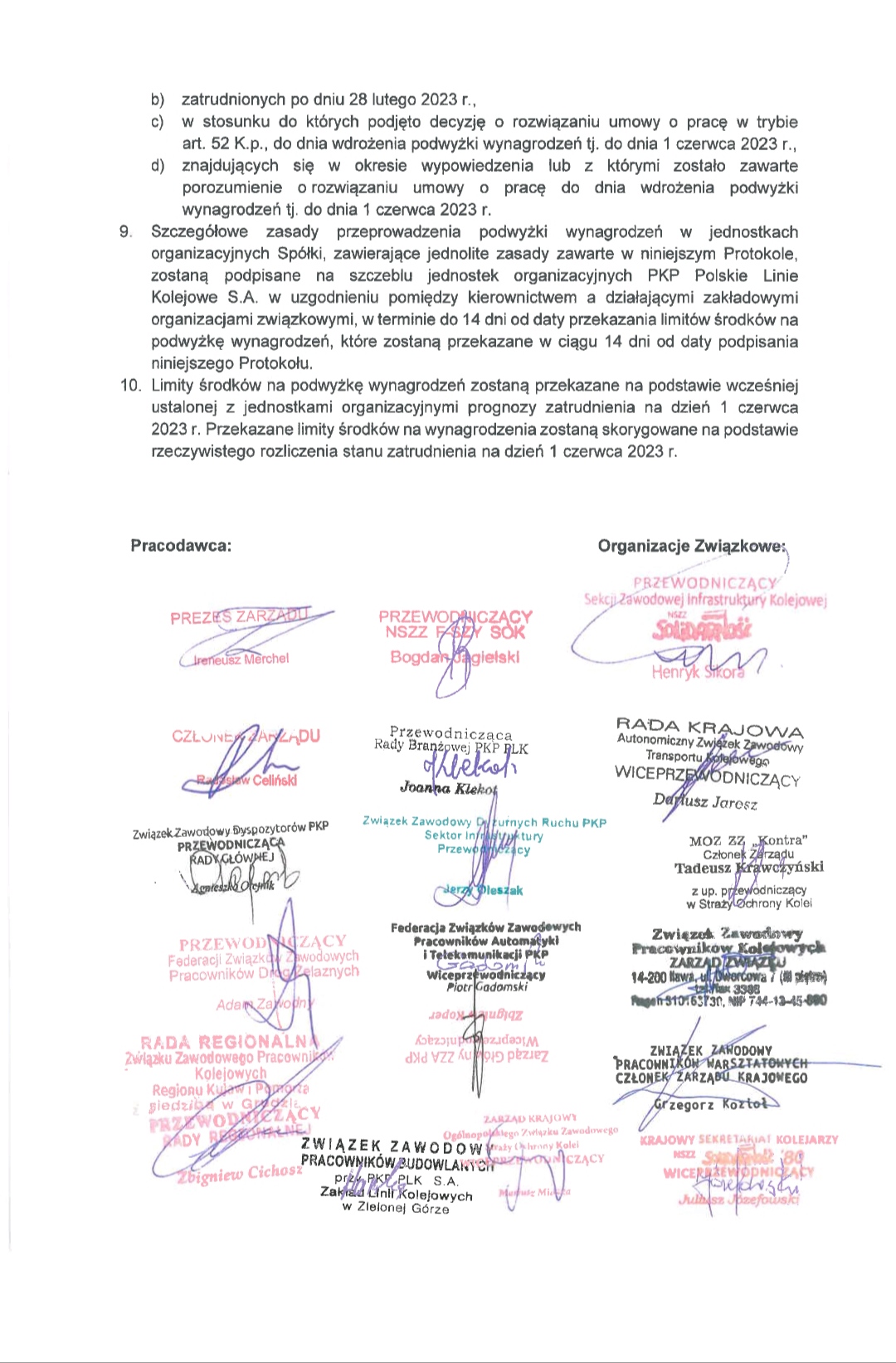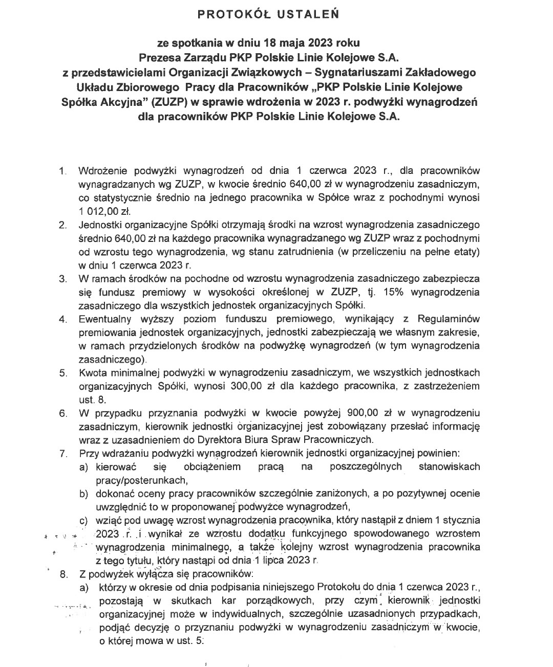 dotyczącego podwyżki wynagrodzeń w 2023 roku w PLK .
