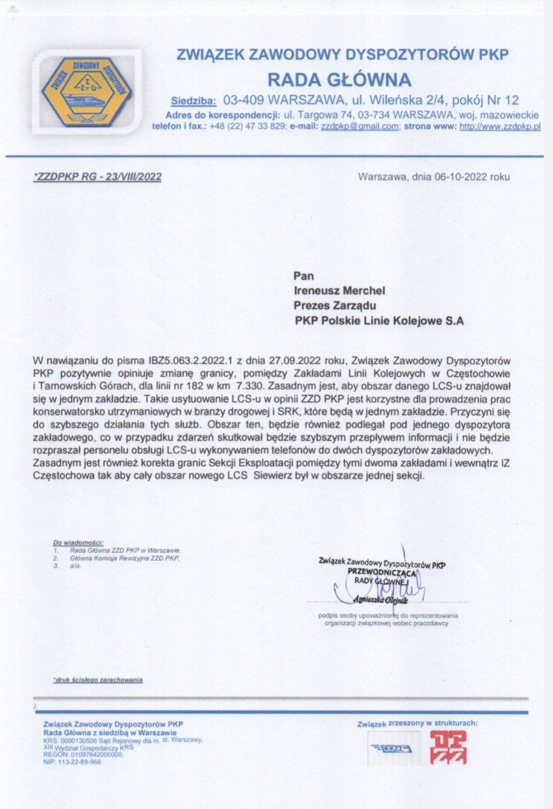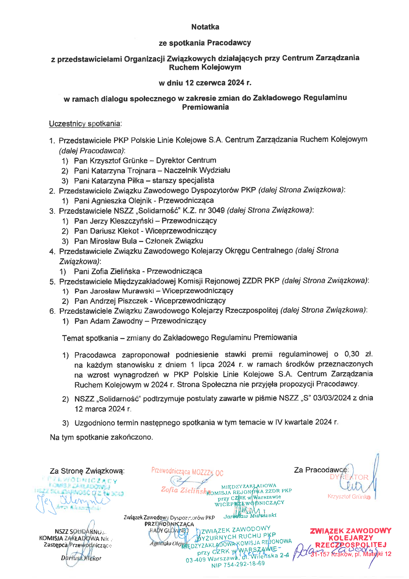 Przedstawicieli Kolejowych Związków Zawodowych.