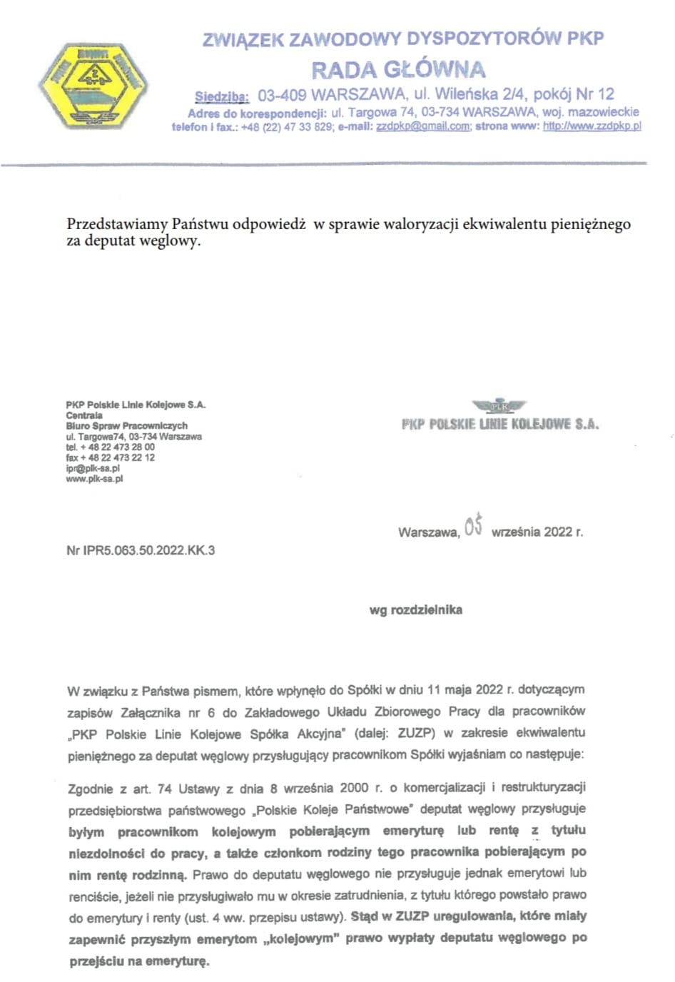Związku Zawodowego Dyspozytorów