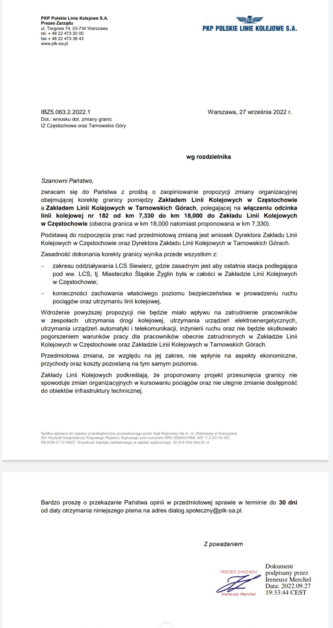 z Zarządem PKP PLK S.A.